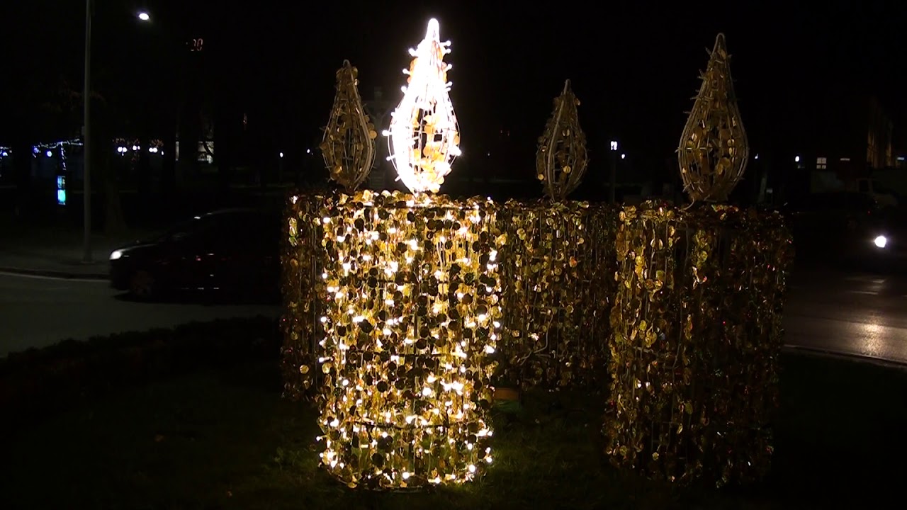 Prva ovogodišnja Adventska svijeća, posebno dekorirana u jesenskim bojama lišća breze, zasvijetlila je u subotu 30. studenog na Kružnom toku u centru Slatine. Lijepo, ljepše